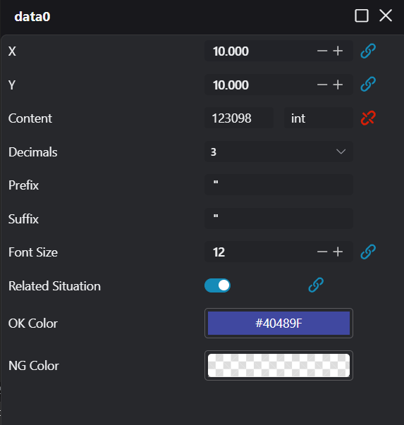 | NG Color | Red | NG color, text color displayed when "Status Association" value is False, default is red | ||