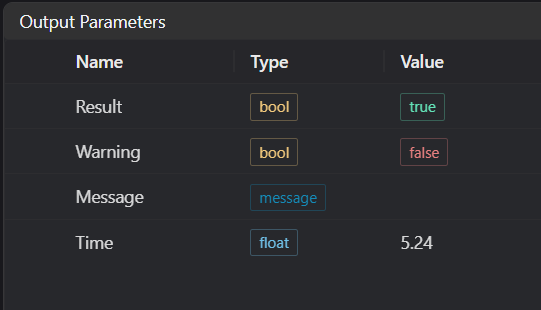 MessagestringOutput success, error, or warning messages. Empty if no error or warning.