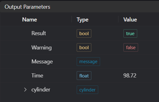 | Message | string | Output success, error, or warning messages. Empty if no error or warning. | |