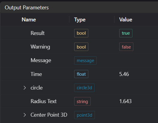 | Center Point 3D | point3d | Found 3D circle center point |