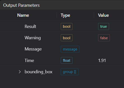 | Message | string | Output success, error, or warning messages. Empty if no error or warning. | |