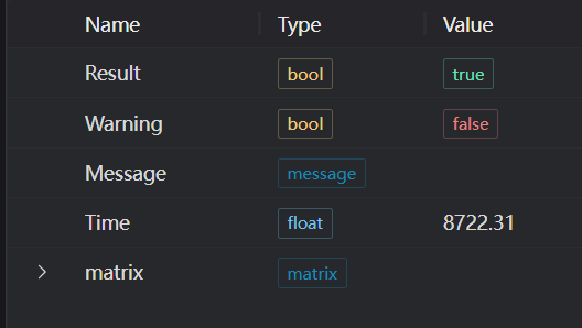 | Message | string | Output success, error, or warning messages. Empty if no error or warning. | |