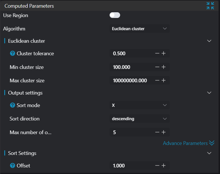 Sorting MethodNo Sorting/Point Count/X/Y/ZNo SortingPoint Count: Sort blobs based on the number of points in each blob.