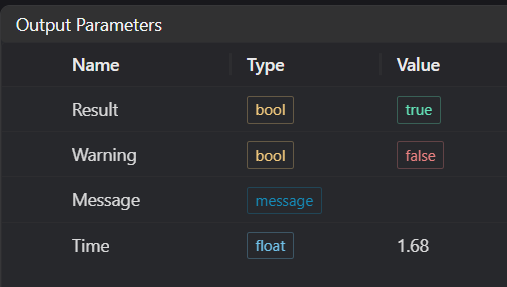 | Message | string | Outputs success, error, or warning information; if there is no error or warning, it is empty | |