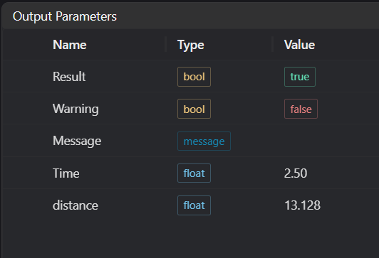 MessagestringOutputs success, error, or warning information; if there is no error or warning, it is empty