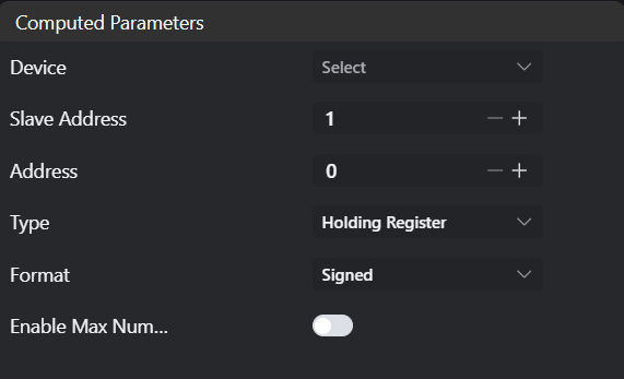 | Device | Select device from the device listNote: Available devices must meet 2 conditions: 1. Device belongs to Modbus group; 2. Device is enabled | |||