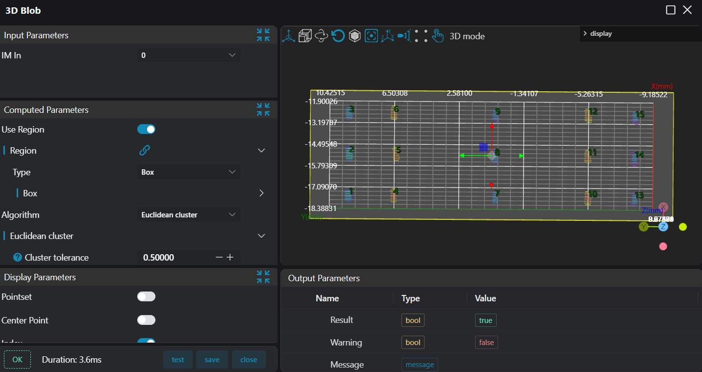 3D Heighttool, bind the output variable (box) of the Lua script tool in the previous step as the region to be measured, and measure the height.Select the