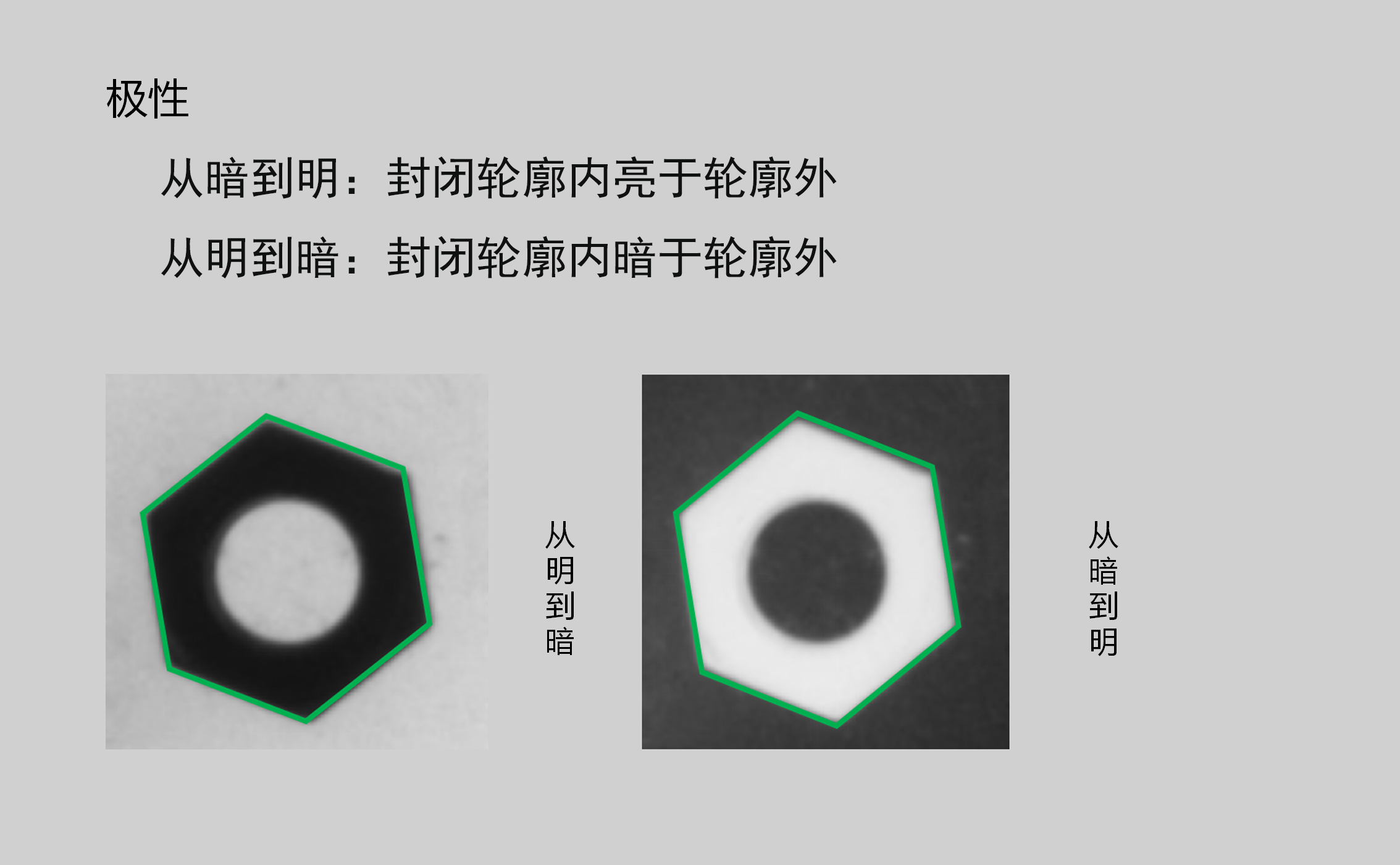 | 极性 | 亮于背景/暗于背景 | 暗于背景 | 亮于背景: 查找高亮度的斑点 暗于背景: 查找低亮度的斑点 | ![]() |