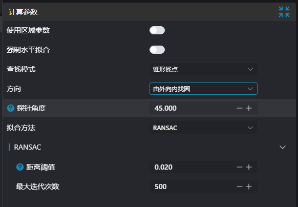 | 最大迭代次数 | 500 | 用于设置RANSAC算法的最大迭代次数,通常迭代次数越多,拟合结果越精确,但计算开销也会增大 |