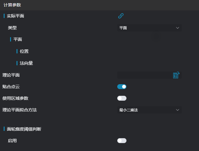 | 贴合点云 | true/false | false | 开启则使用贴合点云功能,理论平面对选取的点云尽可能贴合 | |