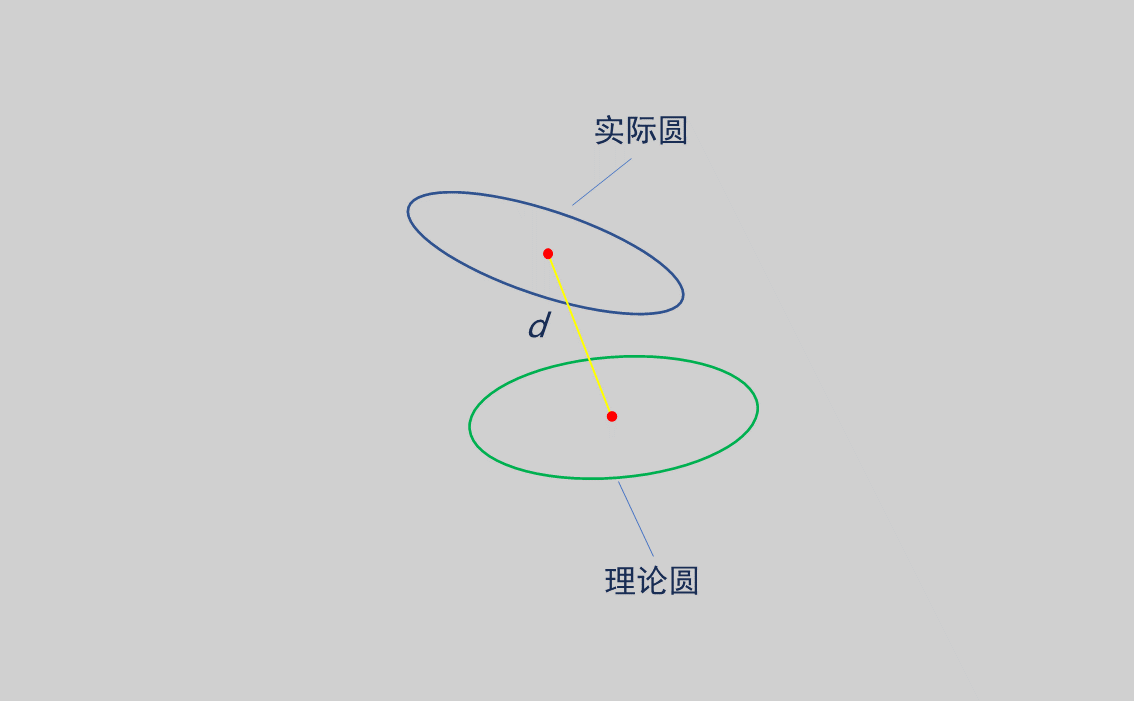 如下图所示,点位置度为实际圆圆心到理论圆圆心的距离