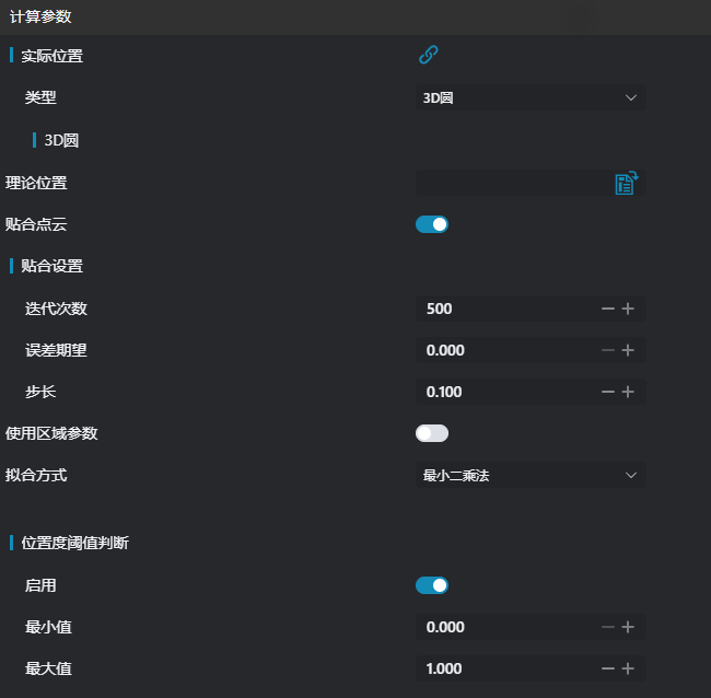 | 贴合点云 | true/false | false | 将理论位置点平移到最贴合区域框选点云的位置,使得测量值最小,参见贴合设置 | |