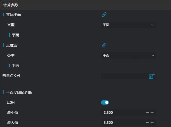 | 测量点与贴合基准面交点连线 | true/false | false | 输入的采集点到实际平面的垂足连线,若启用,则显示在IM上 | |